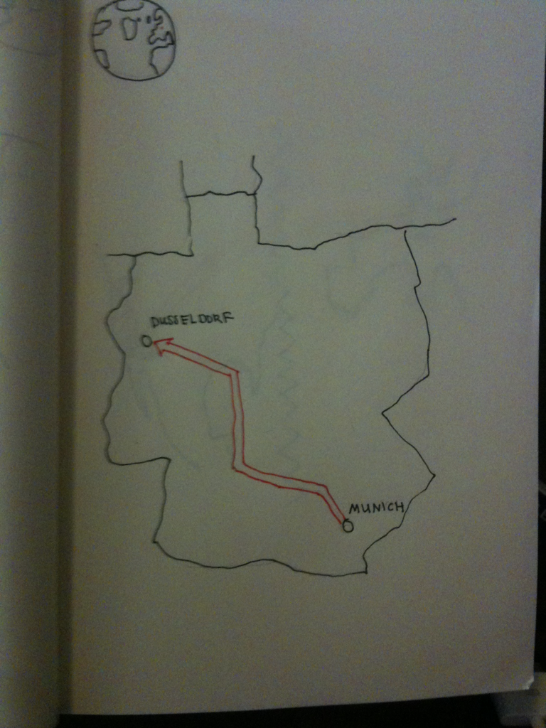 We took a really slick train from Munich to Dusseldorf. I’m fairly certain it was the German equivalent of a bullet train. A screen displayed the current speed, at one point in the ballpark of 260 km/h (160 mph!).