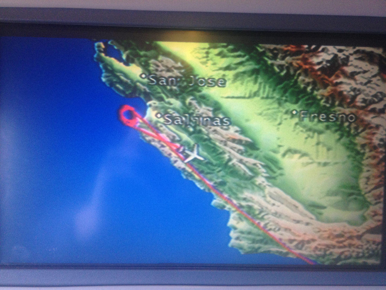 The return trip from Lima-San Francisco made a slight detour this morning. Due to too much fog in San Francisco, our plane flew in circles, right above Santa Cruz to wait for the fog to thin.