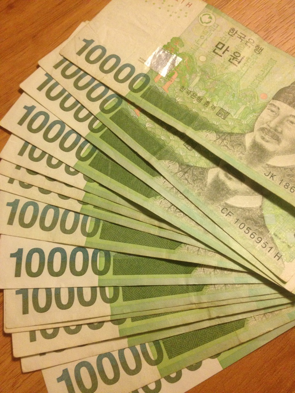 With current exchange rates, ₩160,000 is about $145. This sounds much less baller, much harder to make it rain.