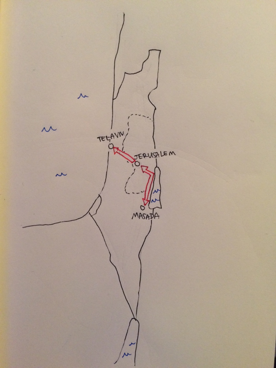 Yesterday we left Jerusalem in the morning and took a day trip to visit Masada, the Dead Sea. We arrived in Tel-Aviv in the evening. Israel is such a small country and so narrow in the middle that it’s really easy to cross it—and back—in the same day!