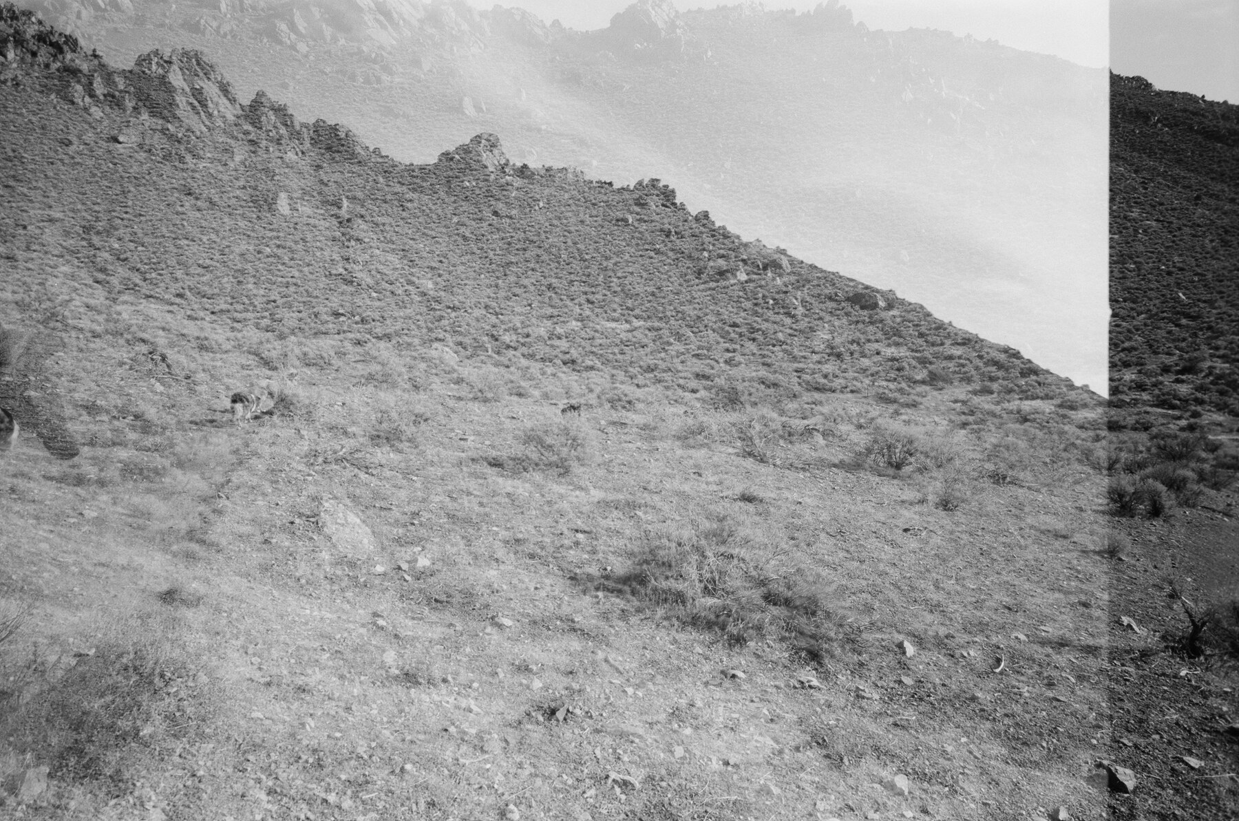 Usually I buy rolls of T-Max 100 with 36 exposures. Somehow this time, I picked up one with only 24 exposures. I hit the end of the roll and it got stuck (as it should), but I was expecting 12 more shots. I tried rewinding the roll a bit, thinking that might help. It didn’t magically make more shots appear on the roll, but it did give me this little double-exposure shot.