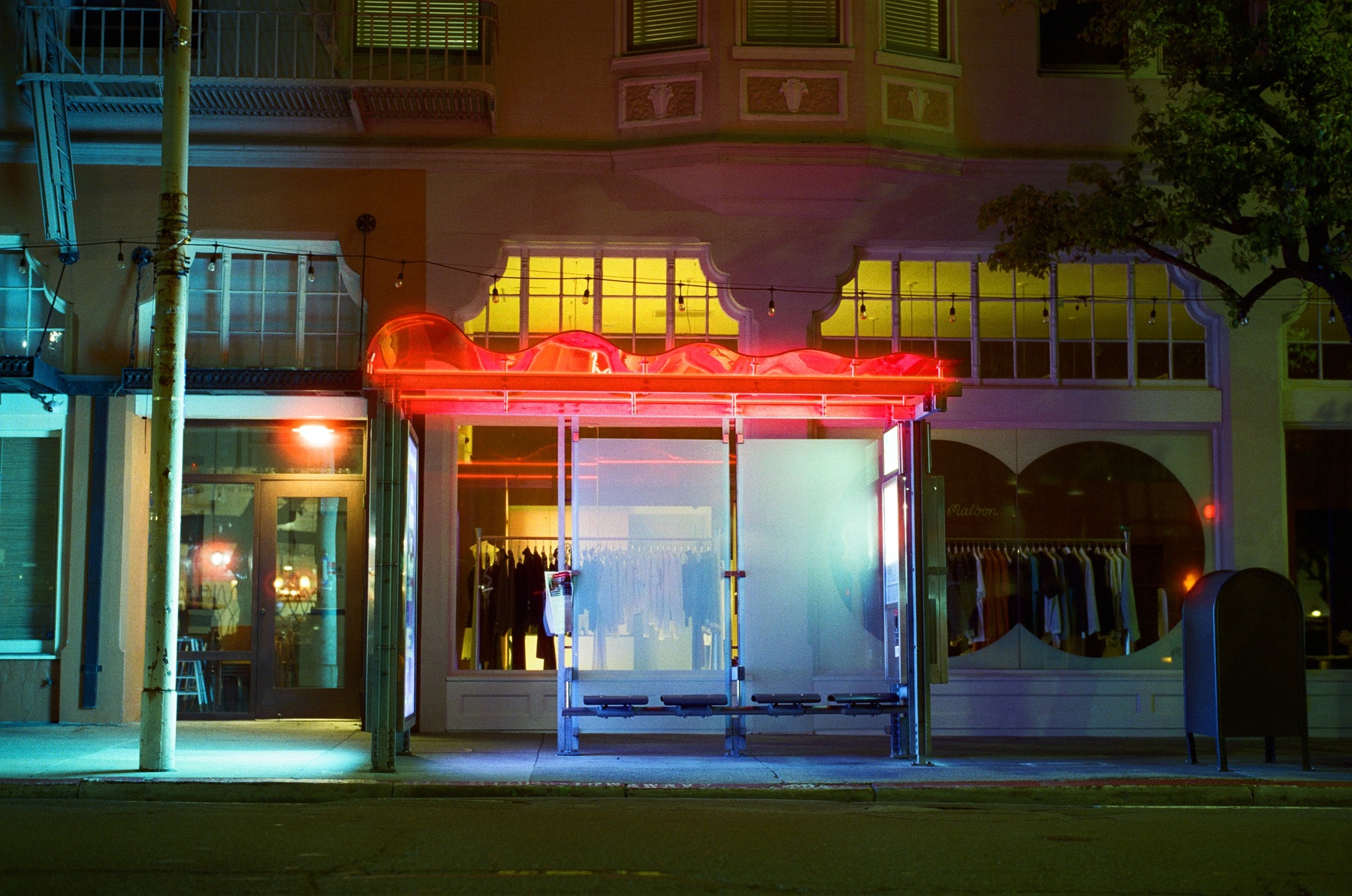 MUNI bus stop (not neon)