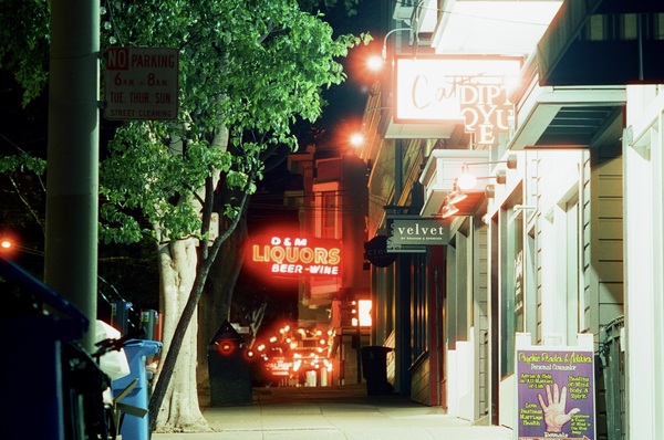 The plan: pick a good film stock to use at night, bring a tripod, and try multiple lenses. I’d shoot my 50mm on the way down the street, switch and use the 135mm on my way back.