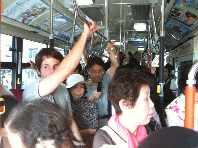 We were packed in like sardines on this Kyoto bus. I like riding the train more than riding the bus, because even though the trains can get more dense, the fact that a train is on a track means it won’t make any crazy sharp turns that throw you against your neighbors.