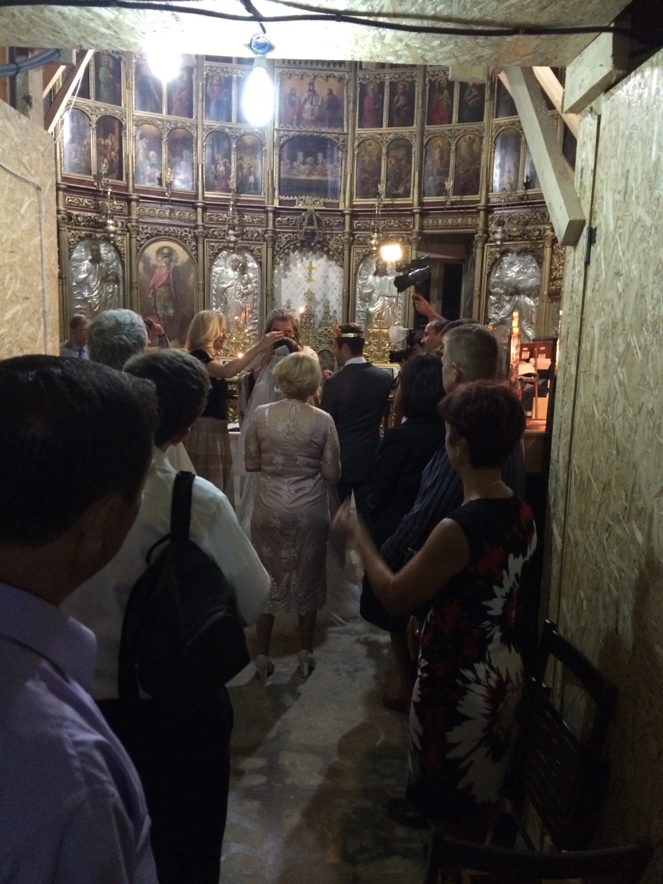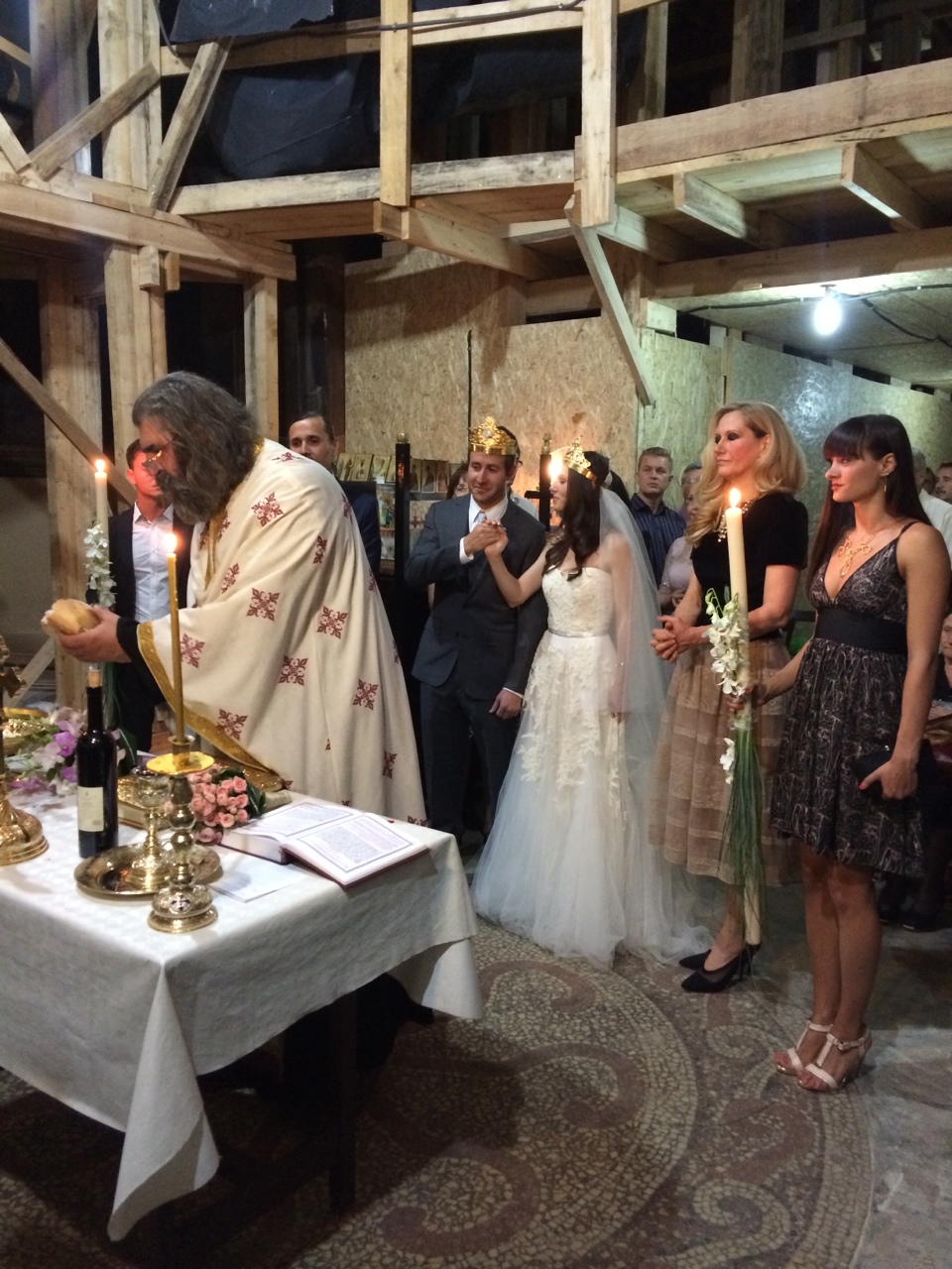 The ceremony was small, intimate, and in a church undergoing renovations. Check the scaffolding!