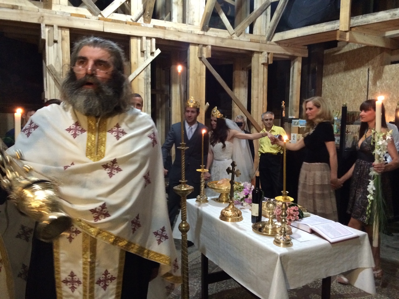 The priest was awesome. He added a couple of choice words in English during the service: “forever”, “chief”, “I’m starving”. Afterwords, he introduced himself. “You know me. I am the men in black!”